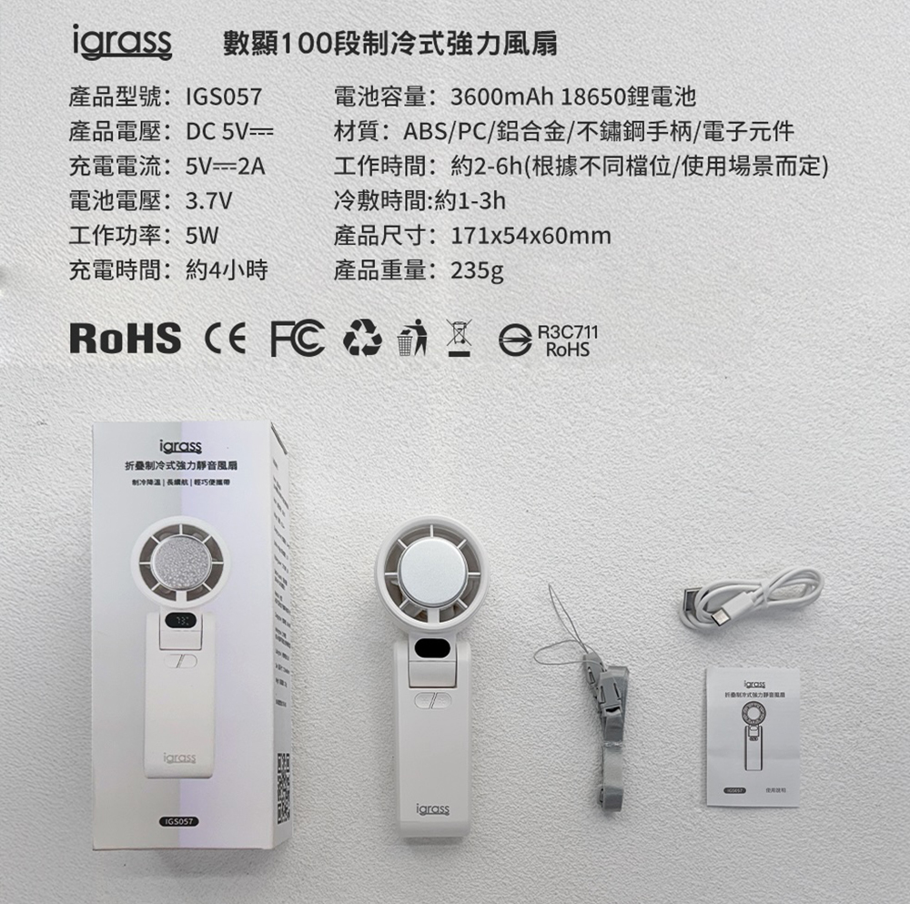 igrass|折疊制冷式強力風扇(IGS057)(錢魚)