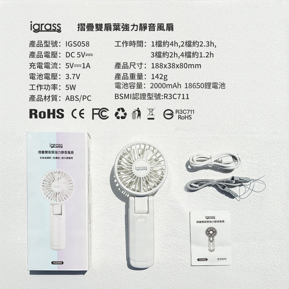 igrass|摺疊雙扇葉強力靜音風扇(IGS058)(馬卡人妻)