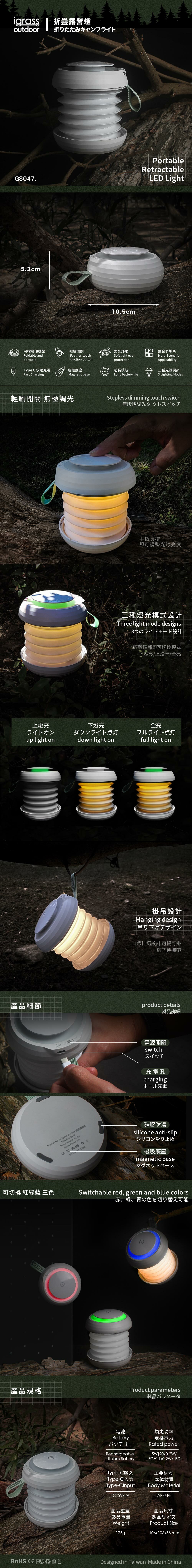 ● 可調光功能,避免過亮的燈光干擾夜間活動或觀星。