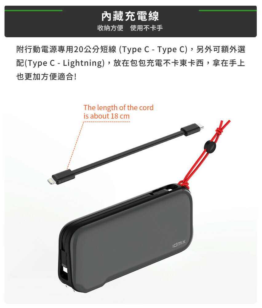● 附行動電源專用 (Type C - Type C),可額外選配(Type C - Lightning)