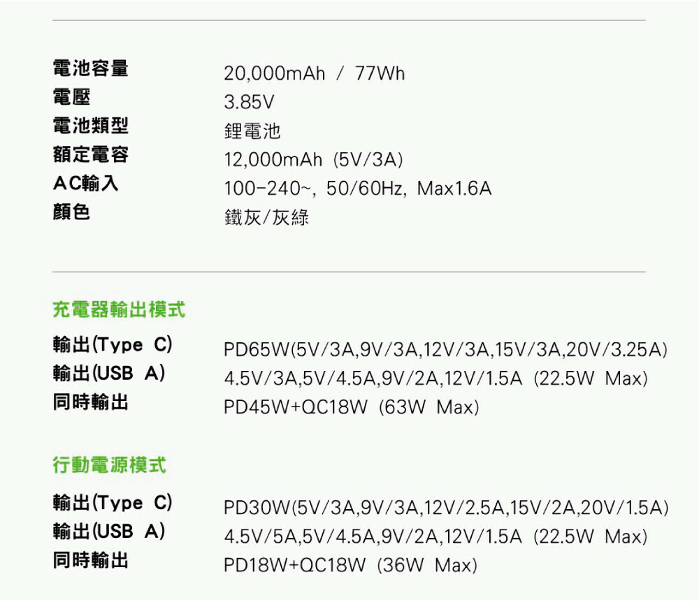 ● 行動電源模式 - 可達30W快充,支援多款裝置