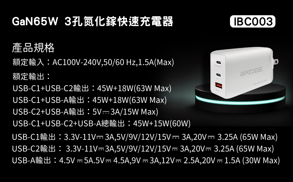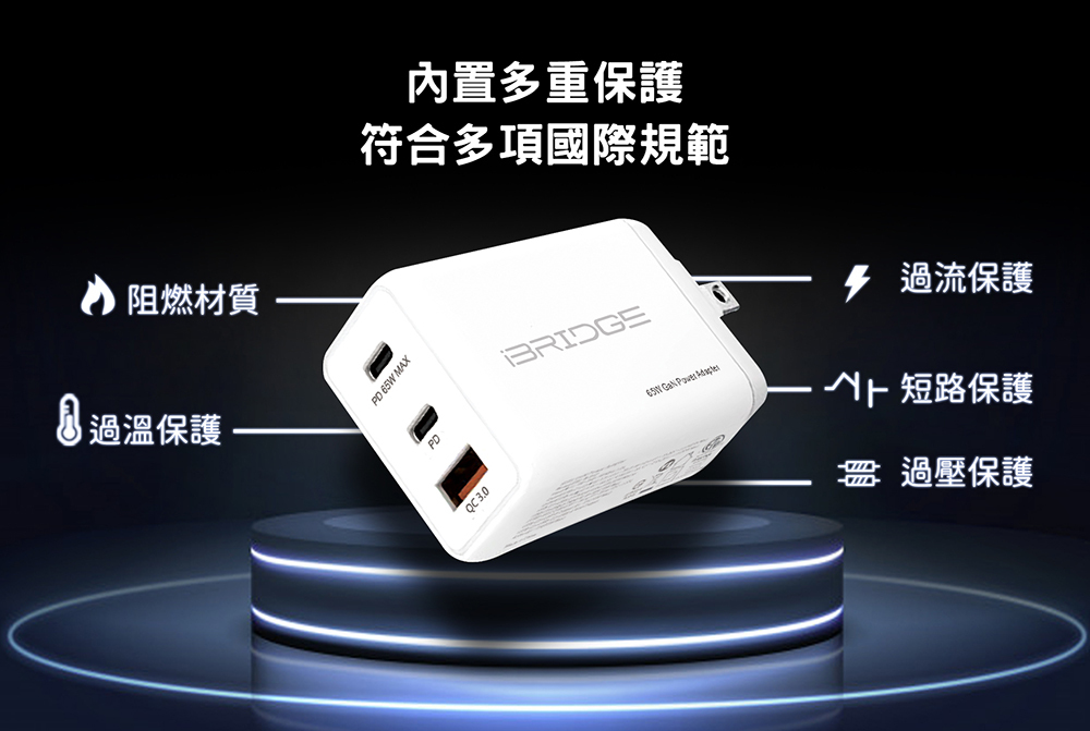 ● PI新晶片,充電協議全支持,全電壓設計100-240V