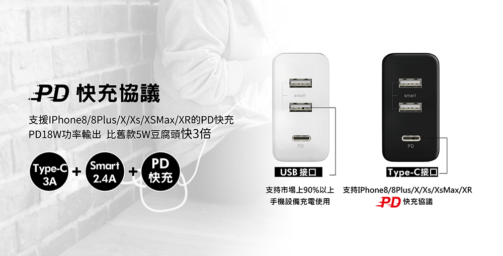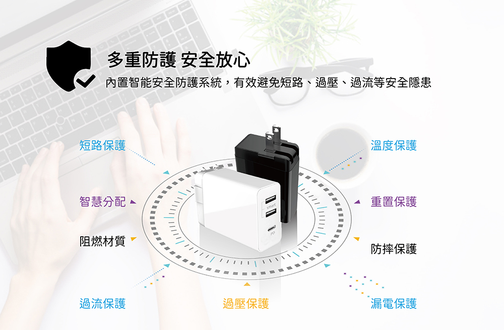 ● 支持雙USB+PD輸出,可同時支持3個設備充電