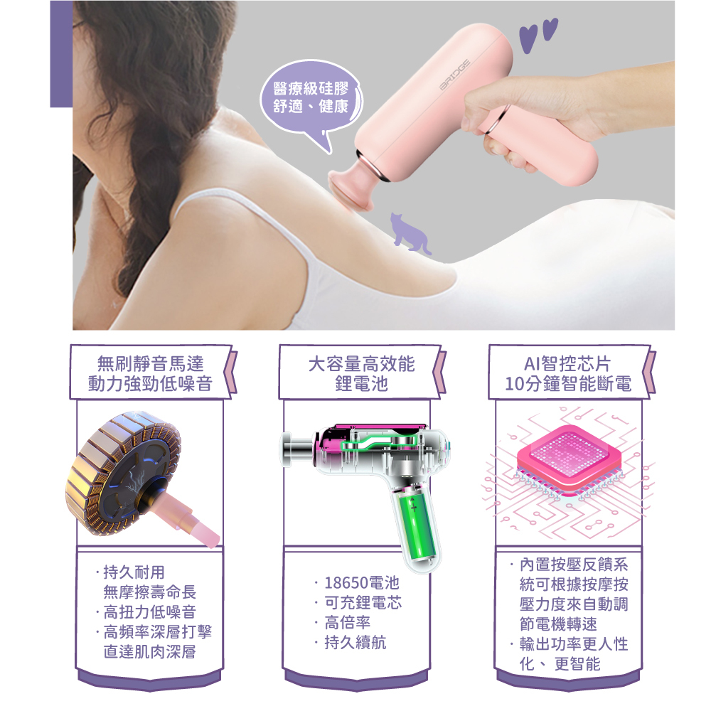 ● 三檔可調,輕鬆按壓、筋膜放鬆、按摩肌肉