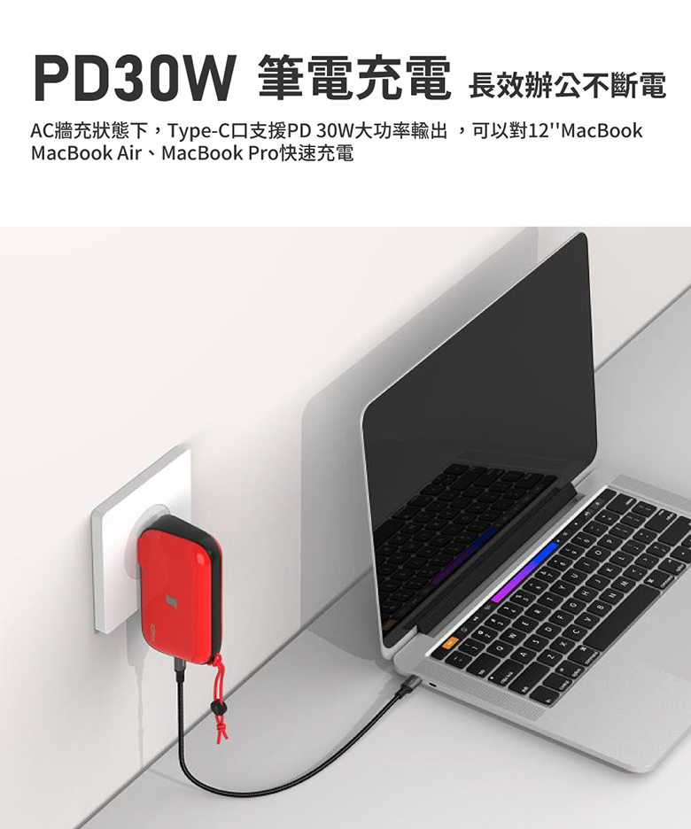 ● PD 30W 筆電充電,充滿12吋MacBook只要約2.1小時