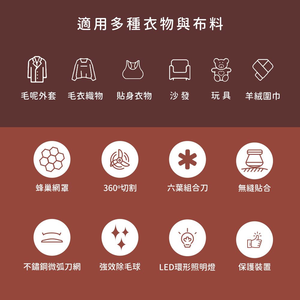 ● LED輔助照明,方便清除毛球