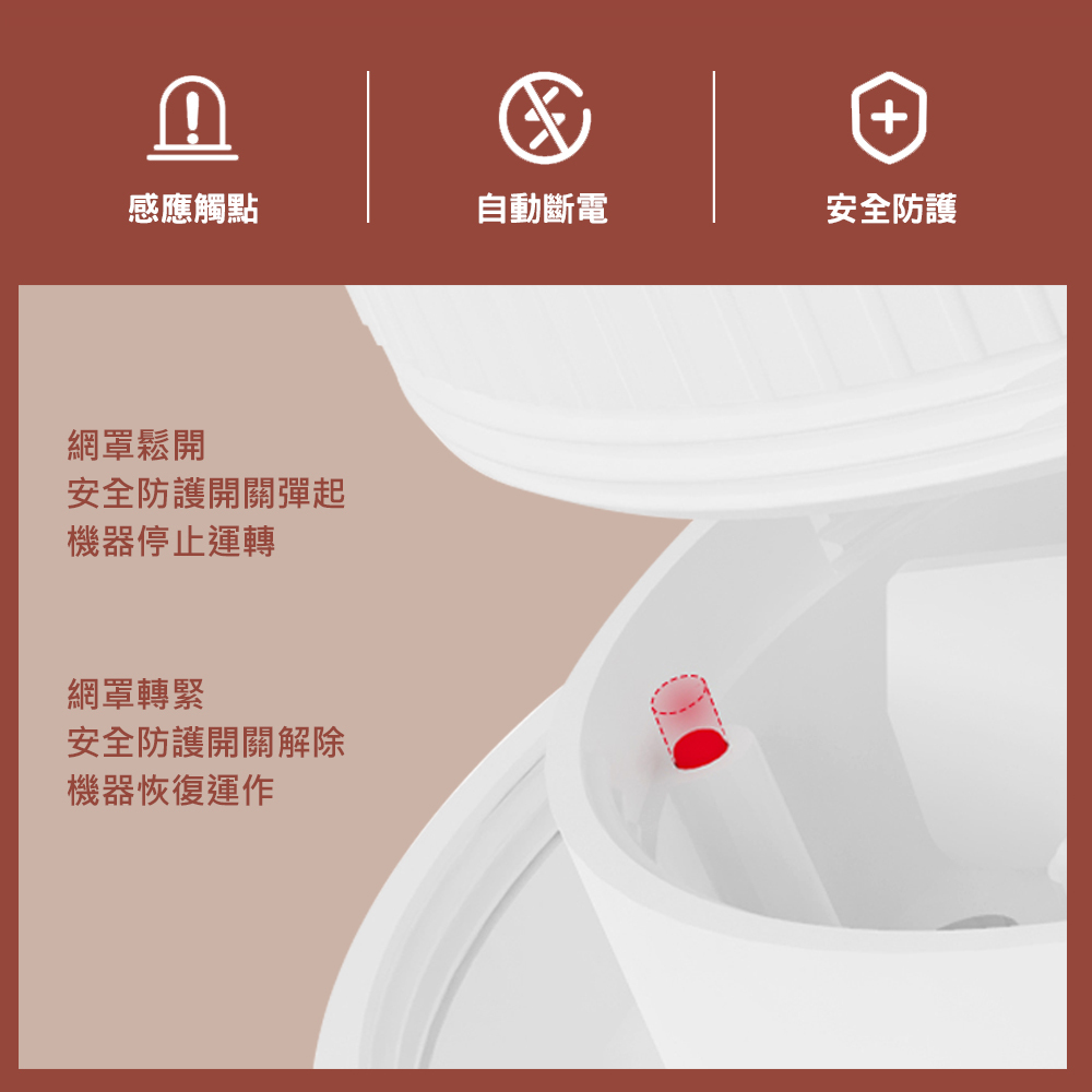 ● 內有安全開關預防不小心拆開機器