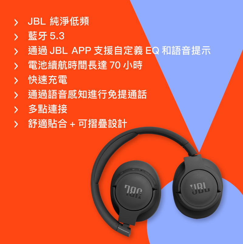 ● JBL Pure Bass音效重現強勁低音;最新藍牙5.3技術,連線穩定