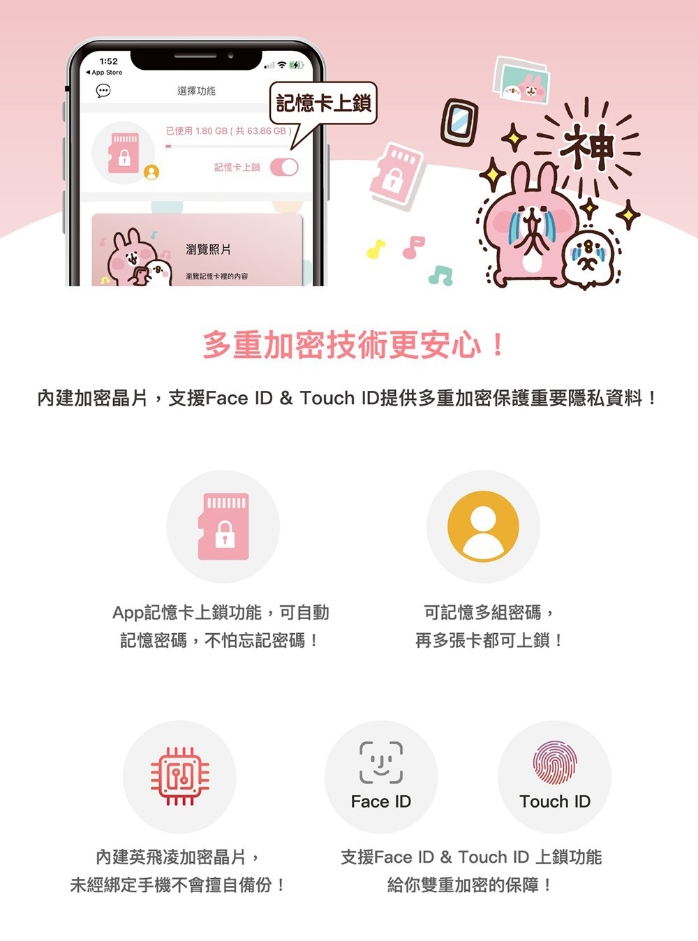 ● 保護隱私超簡單,一鍵上鎖記憶卡就搞定