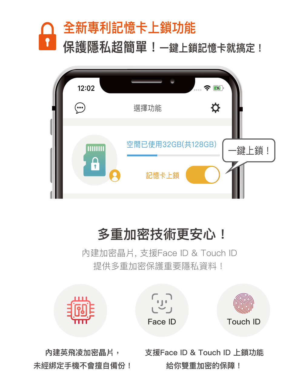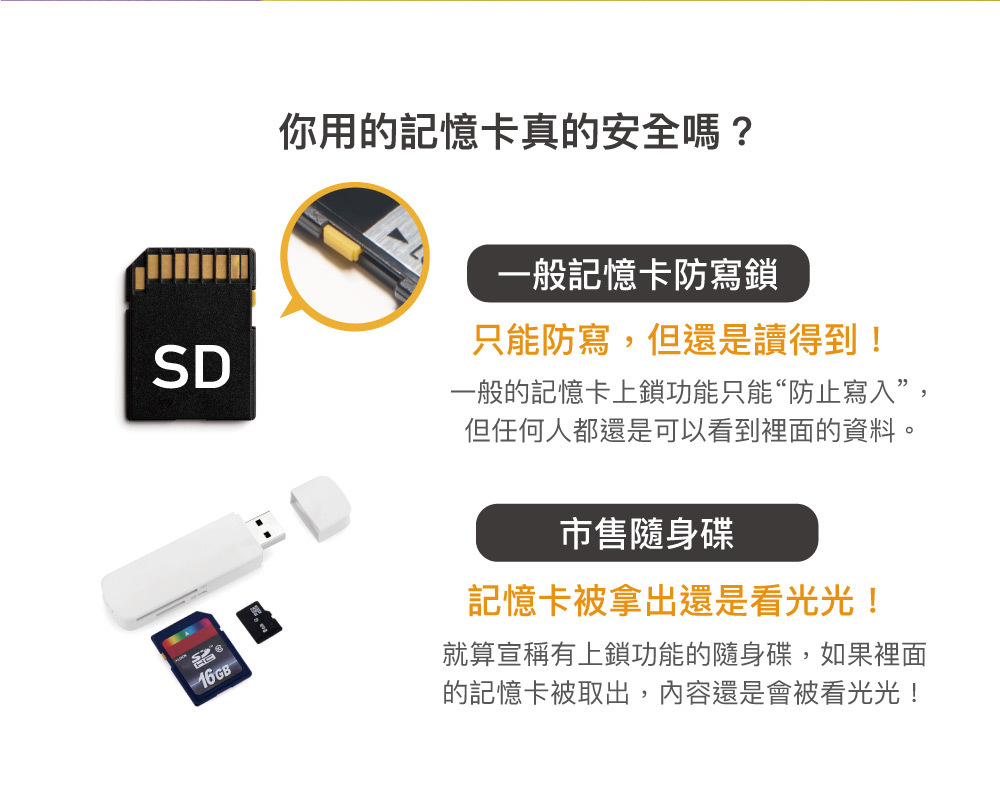 ● 保護隱私超簡單,一鍵上鎖記憶卡就搞定