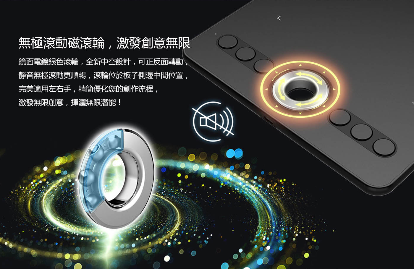 1個銀色中空滾輪和6個自定義快捷鍵,